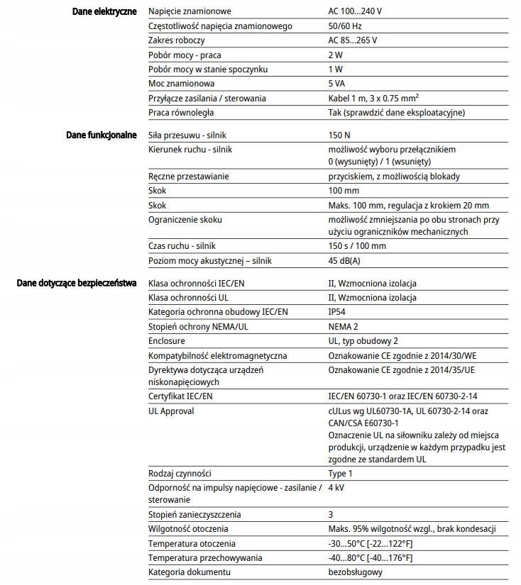 Siłownik liniowy palnika pelletowego LH230A100